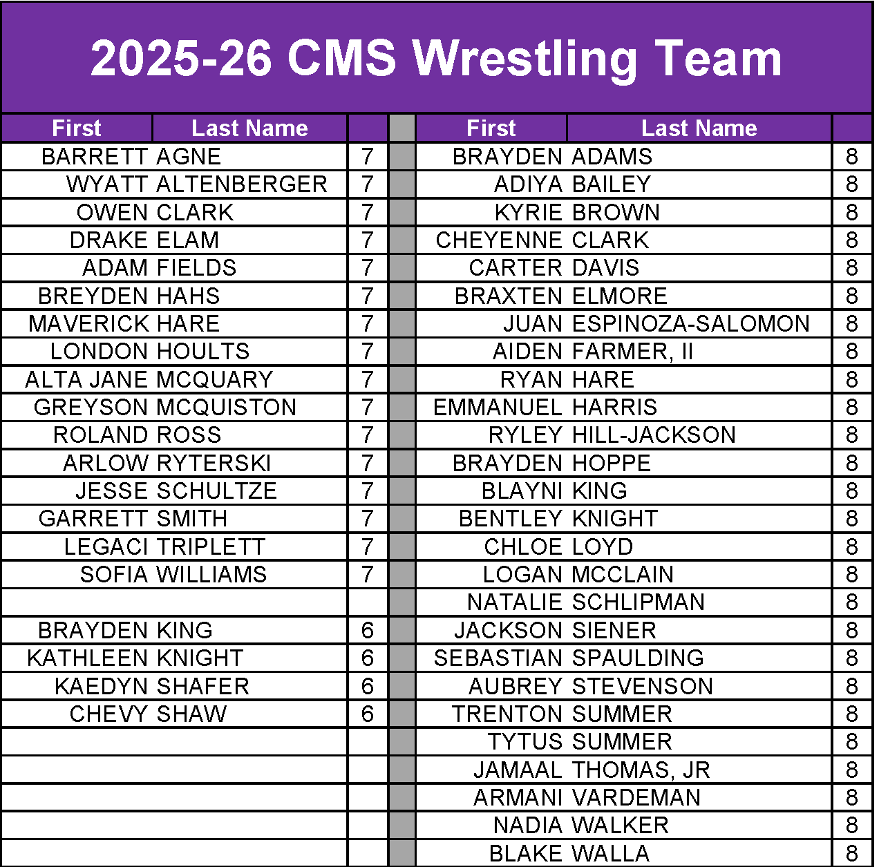 Congratulations to the students making the CMS Wrestling team! Click the form to see the team roster. Link